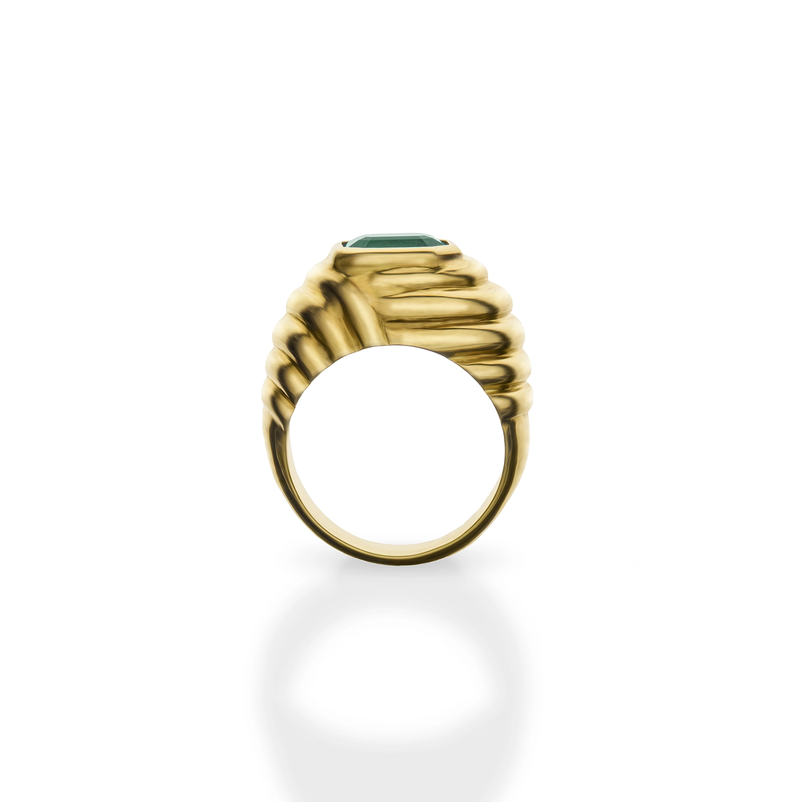 Emerald 3.54 ct., Colombia, octagonal step cut, minimally treated bombé design, set iin 18K yellow gold size 56 (16), 14.7g signed Boucheron Certificate