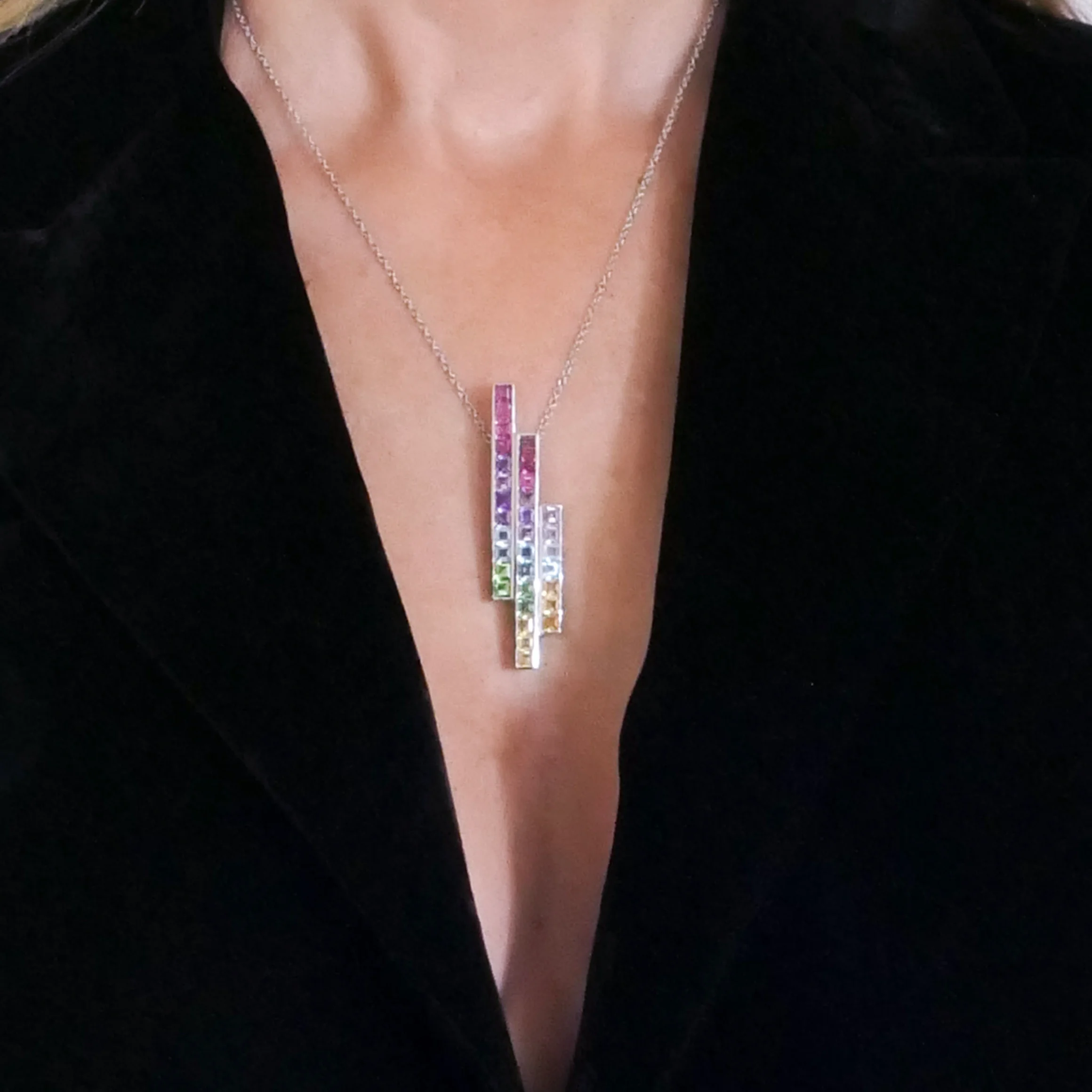 Geometric multigem pendant and brooch, about 1960