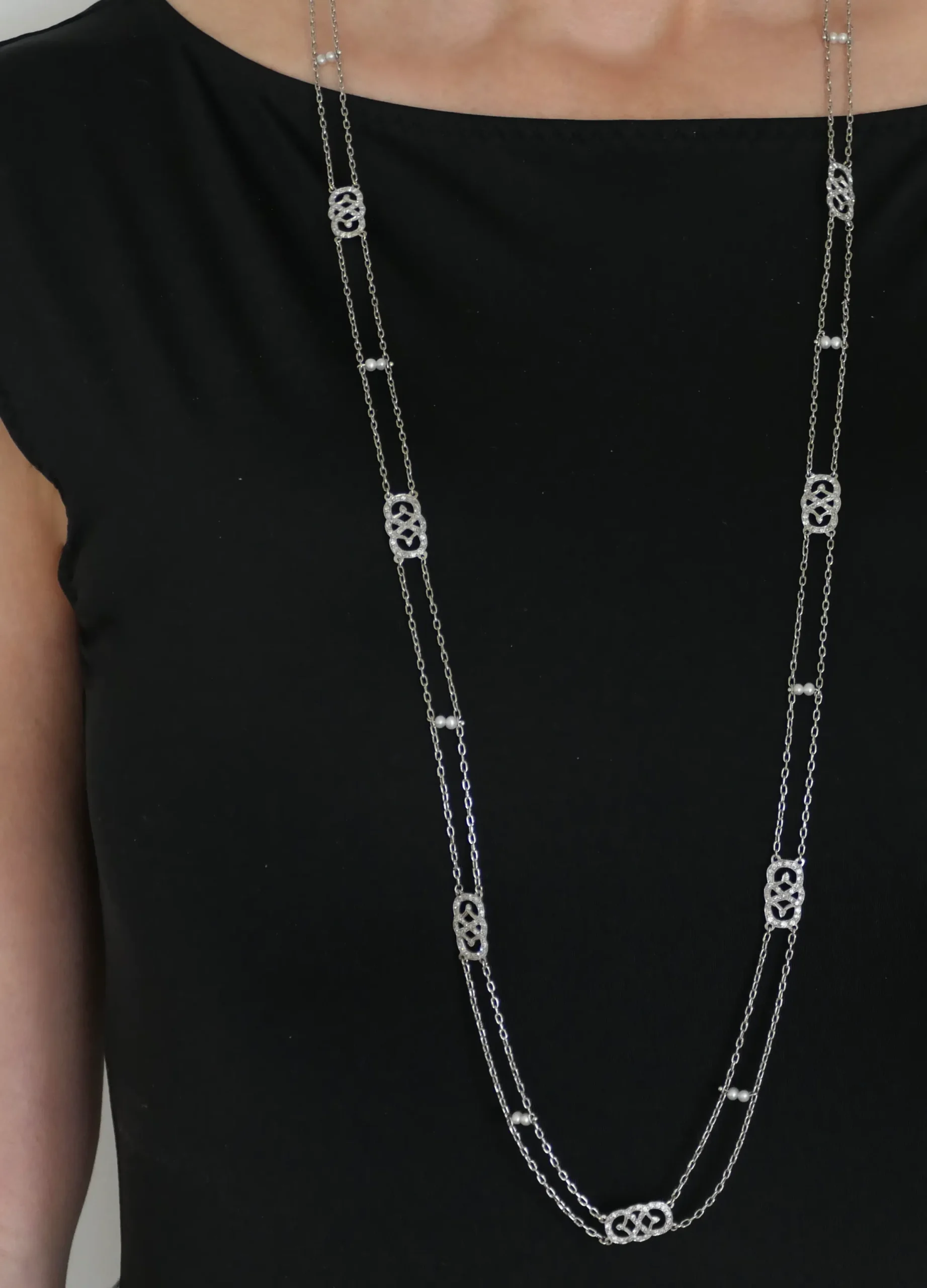 Diamanten ca. 2.00 ct., Altschliff pavé Naturperlen gefasst in Platin, Länge 96cm, 25.6g